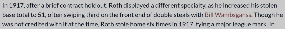 You see, Roth managed to steal home a whopping six times in 1917.