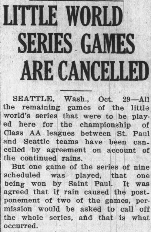 The big hype in the Seattle newspapers was all about the Little World Series, which was supposed to start that weekend.