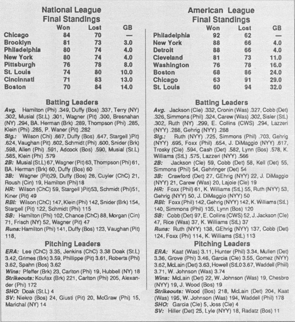 Meanwhile, Hack Wilson led the way with 59 home runs in the National League, as the hapless Cubs somehow managed to beat out the Dodgers, Phillies, and Giants in a wild finish in the National League.