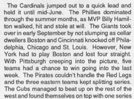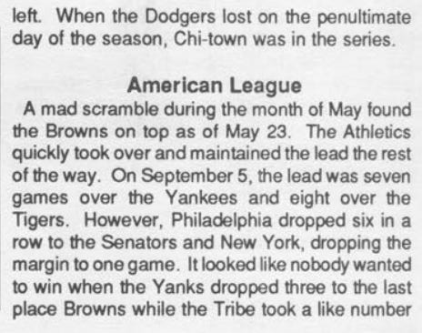 The APBA Journal was an excellent publication for replayers, particularly during the golden age from 1986 to 1992, when Howard Ahlskog was running the show. And some of the old replay reviews are simply fantastic.