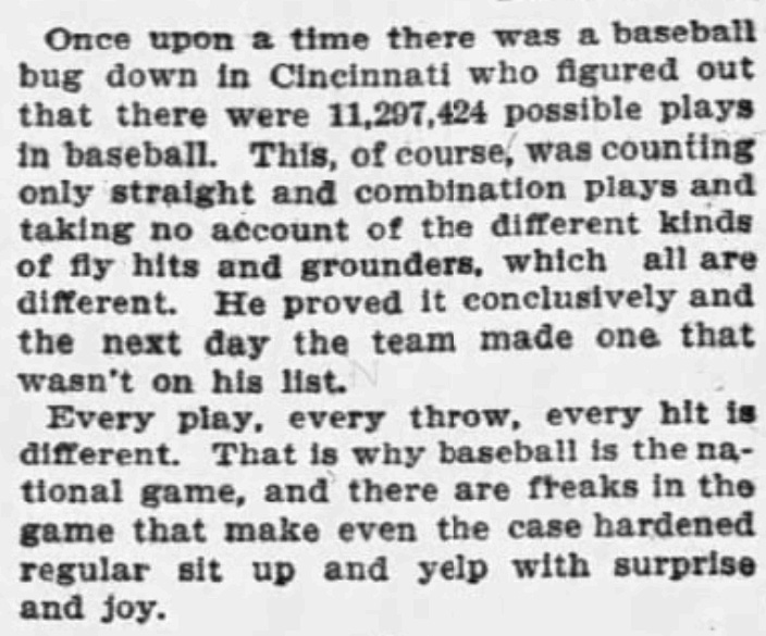 While looking at old issues of The Chicago Daily Tribune, I came across an article Hugh Fullerton wrote back in 1906 about bizarre baseball plays: