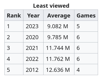 Meanwhile, the lowest viewed World Series tended to be those around the pandemic, as well as Series that didn’t offer particularly compelling storylines: